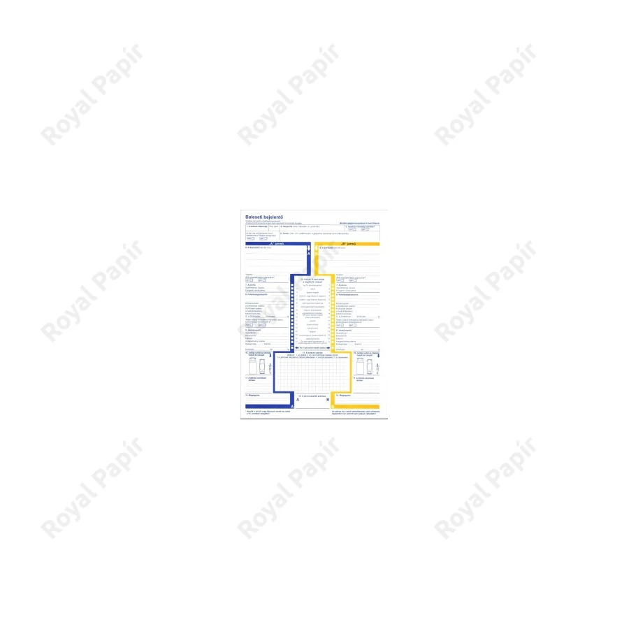 Baleseti bejelentő lap kék- sárga színű 2 lapos garnitúra.