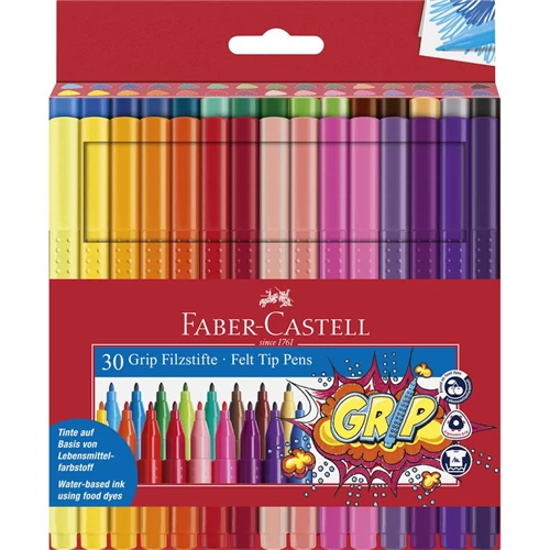 Kiváló minőségű Faber Castell filctoll készlet. Vízbázisú, ruhából kimosható. Élénk színek.