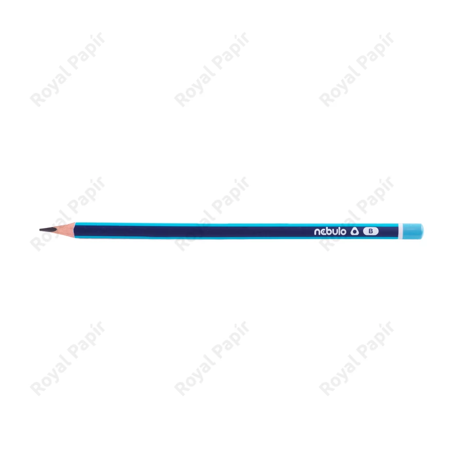 Kiváló minőségű grafitceruza, festett fatesttel, erős heggyel. Ergonomikus, háromszögletű forma. 6 lila és 6 kék csíkos ceruza a dobozban, vonalkóddal ellátva. Keménység: B