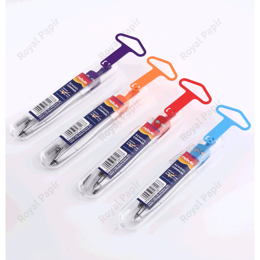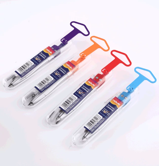 Körző fém lábakkal, 2 mm-es grafitheggyel. A véletlen szúrást akadályozó műanyag dobozban 2 póthegy is található.