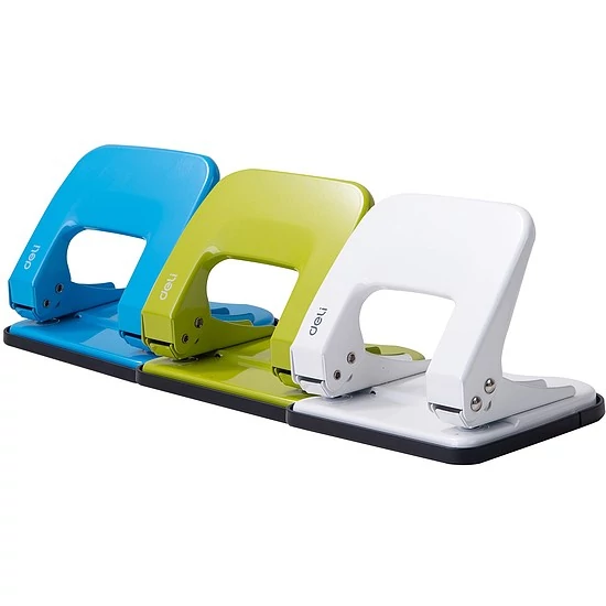 Lyukasztó, kétlyukú, 20 lap, fém, DELI "rio", vegyes szín