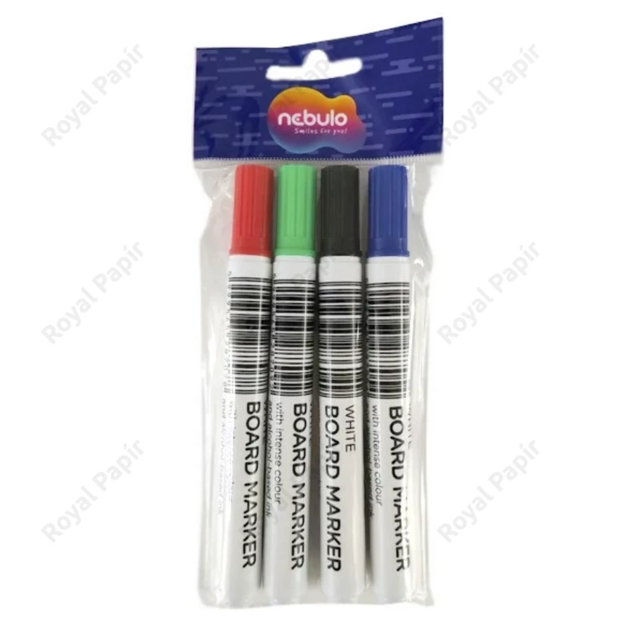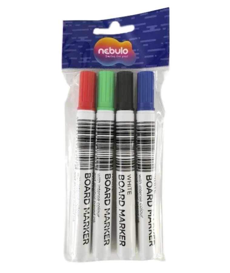 Tábla marker, 4 db intenzív szín, alkohol bázisú tintával, amely nem tartalmaz egészségre káros anyagot. Írásvastagság: 2-3 mm. Kúpos rost hegy, amellyel az írás vastagsága a tartás szögével jól szabályozható. Kiválóan alkalmas írásra és rajzolásra, az élénk színnek és megfelelő vonalvastagságnak köszönhetően távolról is jól látható, így ideális oktatásban való használatra is. A tinta használatot követően azonnal szárad. Fehértábláról, mágnestábláról, műanyagokról, üvegről, fémről szárazon is könnyen és nyom nélkül letörölhető. A tolltest ideális vastagsága kényelmes fogást biztosít. Tinta színe megegyezik a toll kupak színével. Elérhető színek: fekete, kék, piros, zöld Az esetleges kiszáradást elkerülendő használat után javasolt a termékre a kupakot visszahelyezni Íráshossz: 300 m.