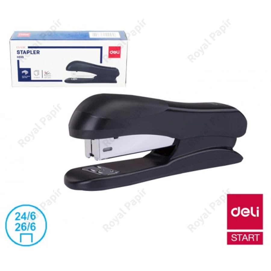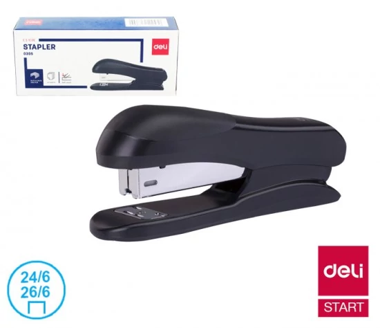 Tűzőgép, 24/6, 26/6, 20 lap, DELI "ESSENTIAL", fekete