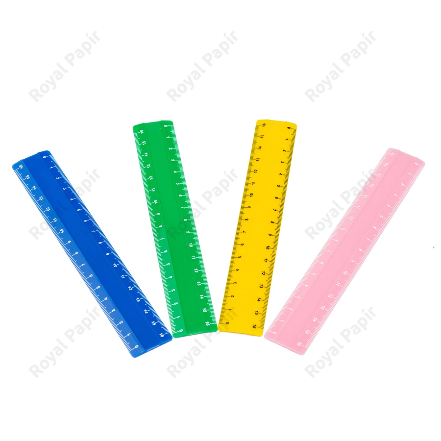 16 cm-es, műanyag vonalzó rózsaszín, kék, sárga és zöld színben. Tolltartóba is ideális.